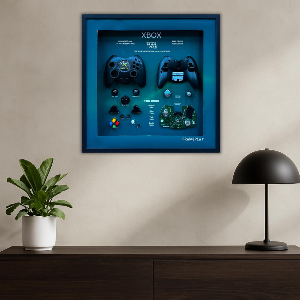 Unsere 50×50 cm grossen 3D-Rahmen werden in sorgfältiger Handarbeit gefertigt und machen deinen Lieblingscontroller oder dein Lieblingsspiel zu einem echten Highlight an der Wand.