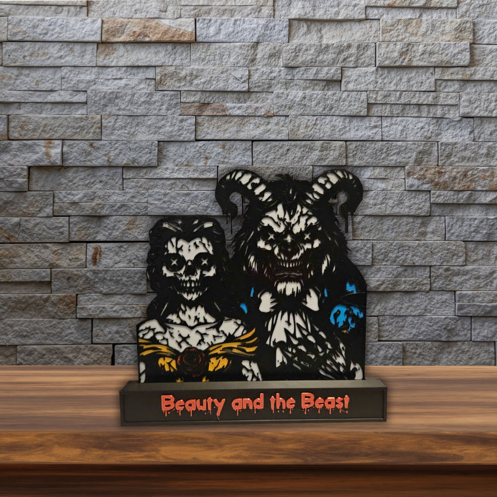 Die klassische Liebesgeschichte – neu interpretiert in düsterem Horror-Stil. Dieses 3D-Druck Kunstwerk zeigt Beauty and the Beast in einer fesselnden, grimmigen Variante – perfekt für Fans von Dark Art, Gothic oder außergewöhnlicher Sammlerobjekte.