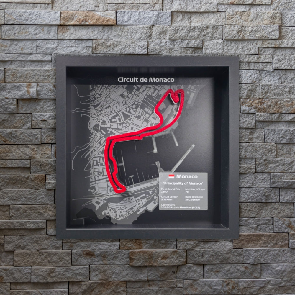 Perfekt für Motorsportbegeisterte und Formel-1-Fans, erweckt dieses dynamische Streckenlayout den legendären Monaco-Kurs in einer einzigartigen, dreidimensionalen Form zum Leben. Verwandeln Sie Ihren Rahmen in ein markantes Herzstück, das eine der aufregendsten und visuell faszinierendsten Strecken des Formel-1-Kalenders feiert.